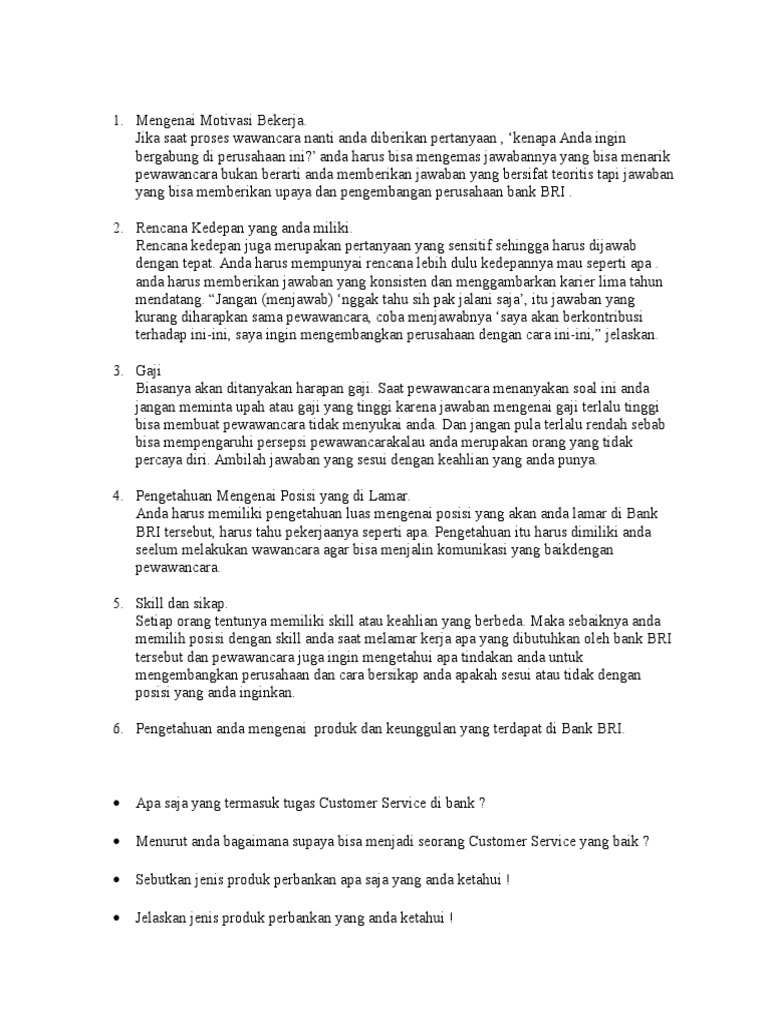 Pertanyaan Interview Bank Bni Dan Jawabannya : Interview Kerja Di Bank Triharyono Com / We did not find results for:. Maybe you would like to learn more about one of these? We did not find results for: Pertanyaan interview bank bni dan jawabannya. Check spelling or type a new query.